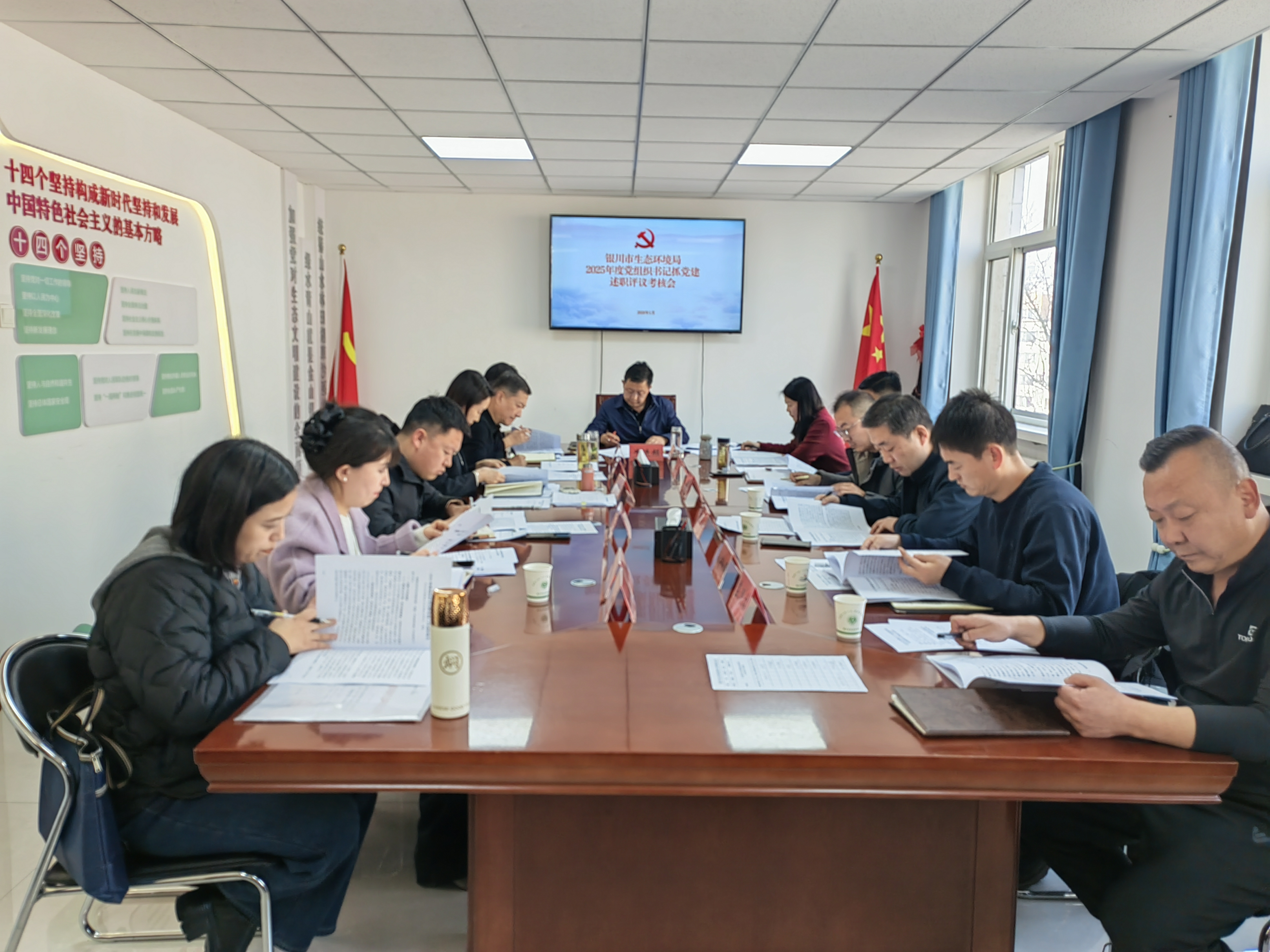 1月30日,银川市生态环境局召开2025年度党组织书记抓党建述职评议会,局党组书记、局长、机关党委书记牛进频同志主持会议并讲话,各党组成员、处级领导,机关党委、机关纪委班子成员,各党支部书记参加会议。会上,西夏分局、贺兰分局、综合执法支队3名党支部书记围绕“四强”党支部建设、党建与业务融合、履职尽责等方面进行现场述职,其他7名党支部书记提交书面述职报告,机关党委书记按照“一述一评”对党支部书记述职的情况作了点评,与会人员对各支部书记履职情况进行了民主测评。