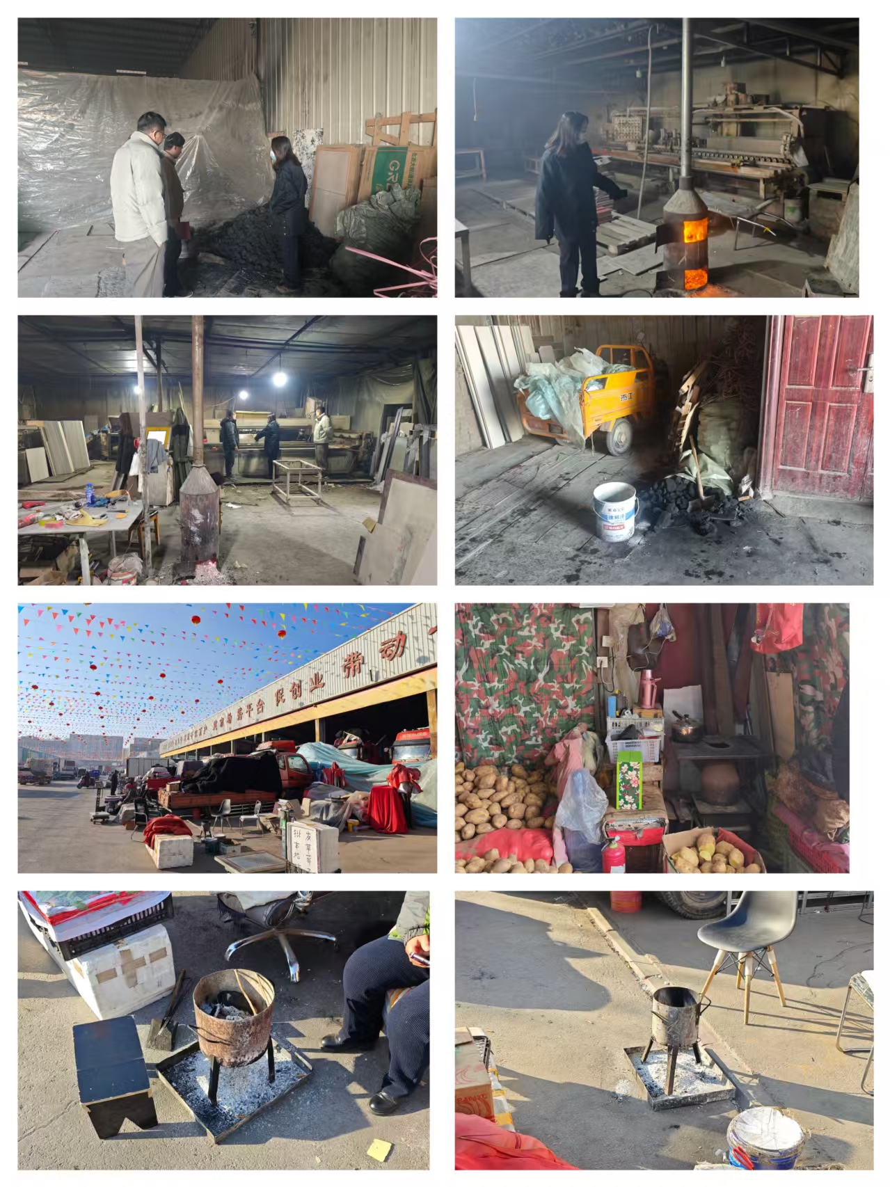 12月18日上午,市生态环境局第七督查组对永宁县重污染天气应急响应防控措施落实情况进行督查检查。一是巡查金盛恒达物流园商户取暖情况,发现月亮瓷砖加工厂、佳禾瓷砖加工等4家均存在散煤燃烧现象,尤其佳禾瓷砖加工厂内烟尘较大,烟味呛鼻,检查人员当场劝解现场负责人停止燃烧散煤。二是巡查四季鲜农产品综合批发市场商贩取暖情况,发现销售商贩均存在采用“自制铁炉”燃烧散煤取暖情况,检查人员劝解商贩停止燃烧散煤,并询问散煤供货来源及煤质。三是检查人员沿途巡查秸秆禁烧情况,并未发现有燃烧秸秆等着火点。