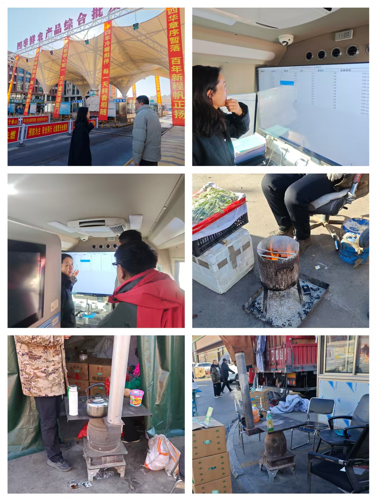 2、复查四季鲜农产品综合批发市场散煤燃烧取暖情况,联合市监测站大气走航车监测市场周围污染因子排放水平,发现部分商户仍燃烧散煤取暖,及时劝解要求不利气象条件下减少污染物排放。