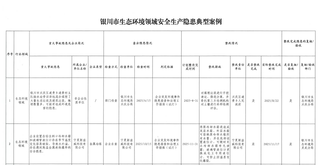 为深入推进安全生产治本攻坚三年行动,持续加强安全生产隐患排查治理,推动银川市生态环境领域安全生产主体责任落实,强化安全生产违法违规行为警示教育作用,现将我市生态环境领域安全生产违法违规典型案例予以公开曝光。