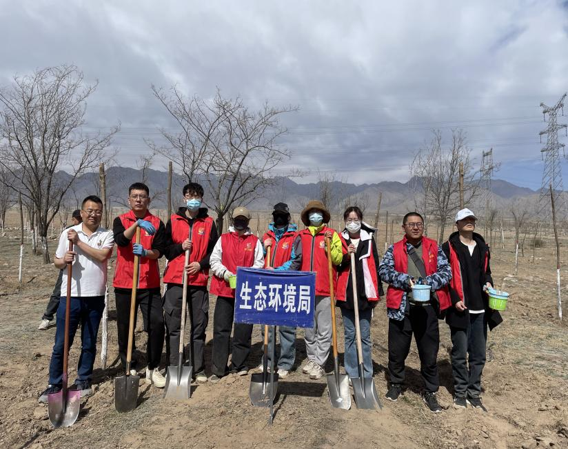 4月10日,银川市生态环境局贺兰分局积极组织干部职工到贺兰县110国道西侧陈家沟1号泄洪沟北侧植树点参与义务植树活动,用实际行动践行“绿水青山就是金山银山”生态文明理念,为贺兰山生态修复保护再添新绿。