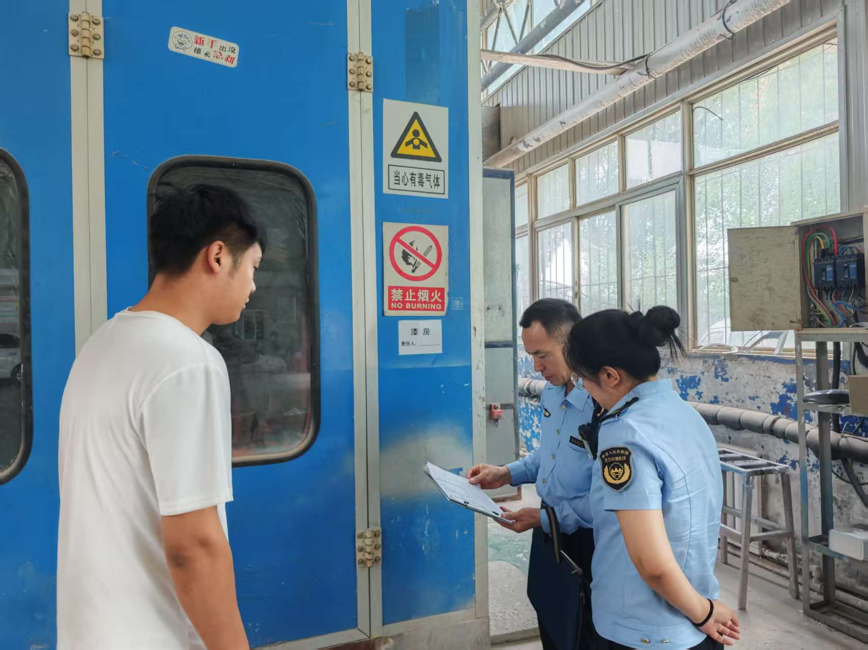 源头减排“出实招”,激发企业减排动力。为从根源上减少臭氧前体物排放,贺兰分局坚持“分类施策、精准管控”原则,对辖区重点工业企业实施差异化减排。通过政策宣讲与需求调研,引导企业制定错峰生产计划,在高温强光时段暂停喷漆、焊接等产污工序,实现污染物排放与臭氧生成高峰的时空错位。动员全县采用活性炭吸附法的企业在5月10日前完成一轮活性炭、过滤棉等耗材更换,确保治理效率稳定达标。联合交通、园区等部门对德胜工业园区及主要交通干道汽车维修企业开展专项治理,全面排查低效失效VOCs治理设施,确保净化设施稳定达标运行。